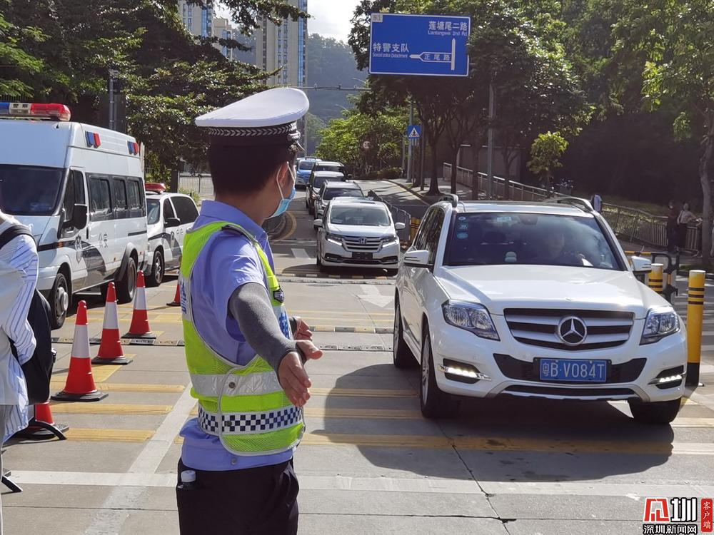 【紅嶺中學(xué)】考點(diǎn)門(mén)口正在指揮車(chē)輛通行的交警。