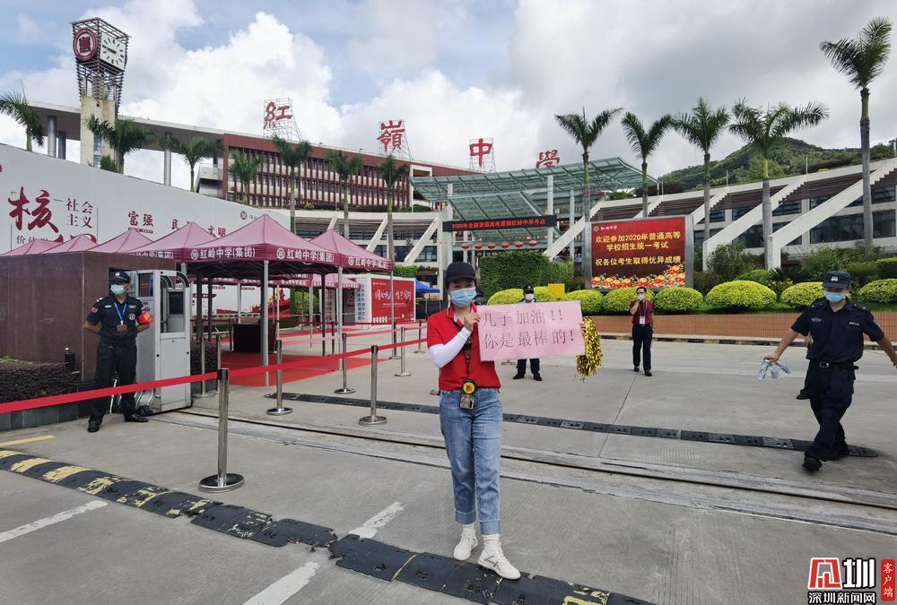 【紅嶺中學(xué)】門口正有一名家長舉著“兒子加油!你是最棒的”標語拍照留念