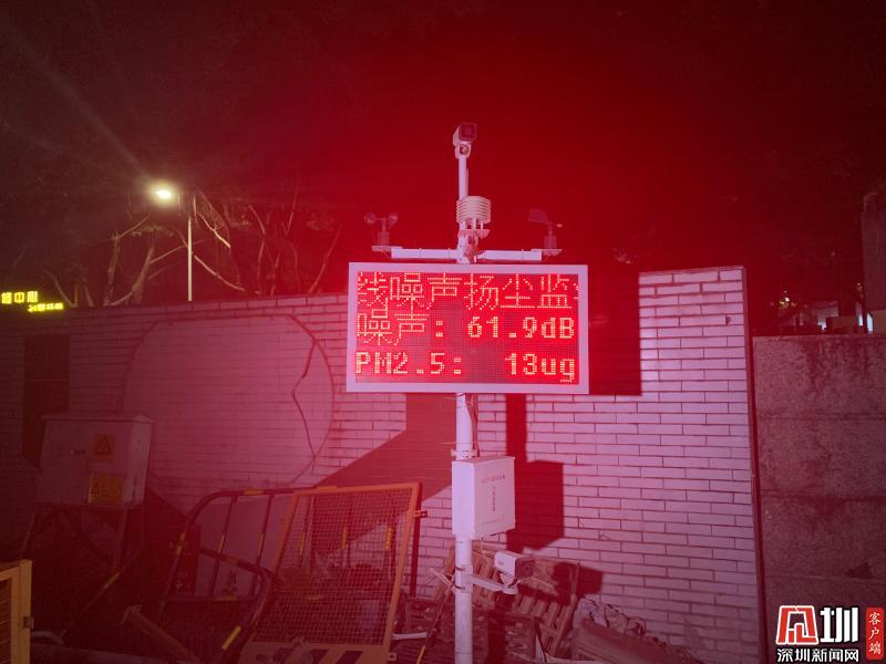 位于梅林中學(xué)附近的華強(qiáng)云產(chǎn)業(yè)園和鄰近的中糧金帝、恒利科創(chuàng)共同組成了一個(gè)工地集群,由于它們都是靠近住宅區(qū)屬于污染源中的二類(lèi)區(qū),在噪聲分貝上有明確規(guī)定,白天不超過(guò)70分貝,夜間不超過(guò)55分貝。記者在現(xiàn)場(chǎng)看到,工地門(mén)口樹(shù)立著在線噪聲揚(yáng)塵監(jiān)測(cè)系統(tǒng),對(duì)工地的噪聲污染和空氣污染進(jìn)行實(shí)時(shí)數(shù)據(jù)監(jiān)控。