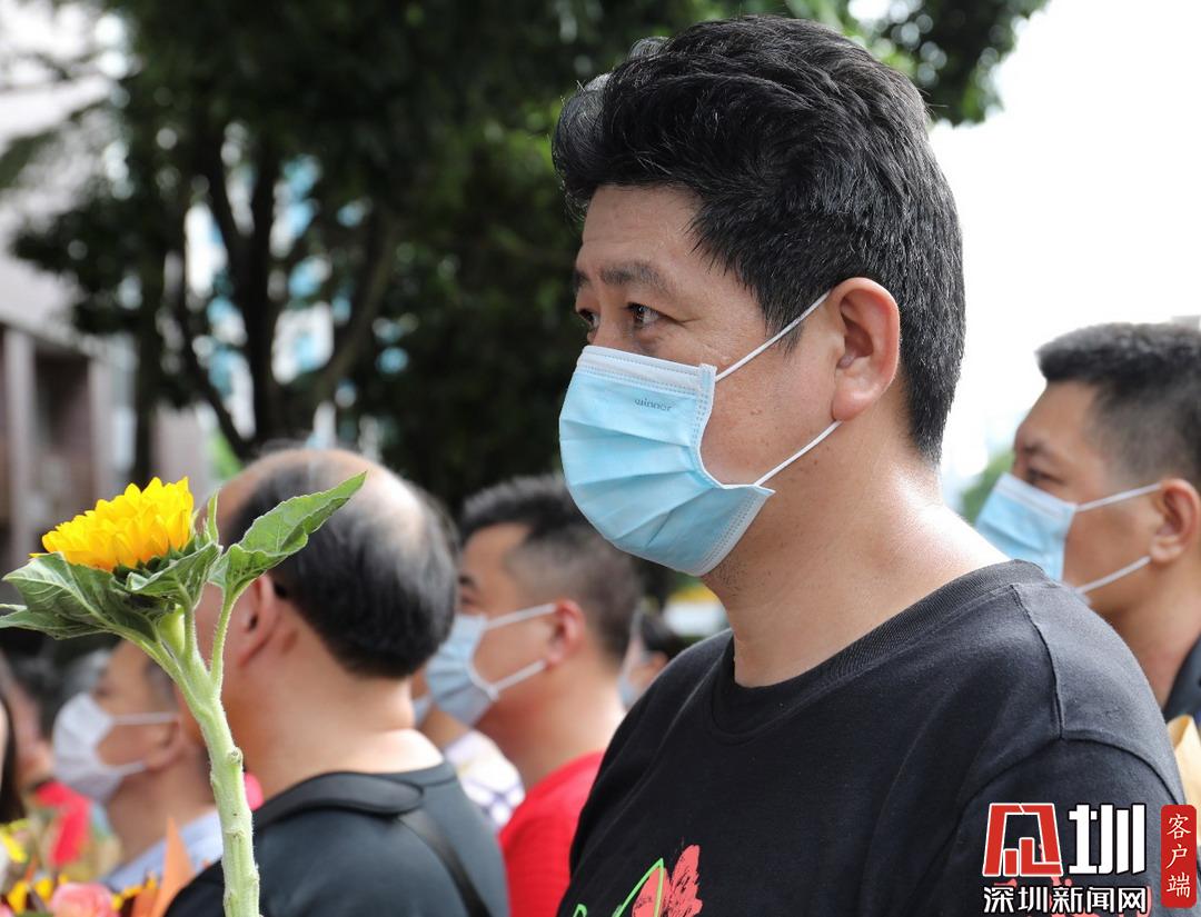 深圳高級(jí)中學(xué)考點(diǎn)外家長(zhǎng)受捧鮮花、滿(mǎn)懷期待。