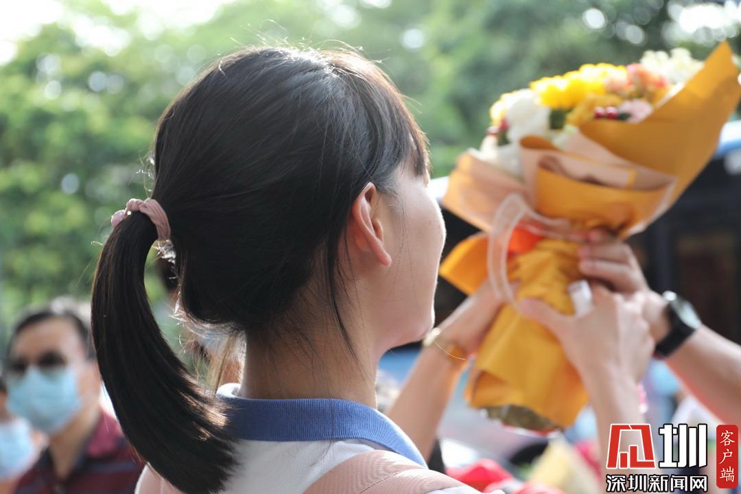 深圳高級(jí)中學(xué)考生走出考場(chǎng)收到父母鮮花。