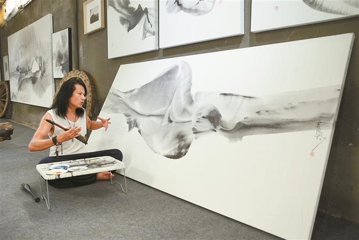 鄭泰均有個心愿,希望能在深圳找到一條河流,放一只大型竹筏,將宣紙鋪滿,在自由漂流中作畫。他曾在寶安至美術(shù)館開個展的時候留意過旁邊的一條河流,當(dāng)時那條河還散發(fā)著難聞的氣味,但是經(jīng)過近些年深圳在“水治理”方面的大力投入,去年他再去美術(shù)館時,那條河河水已經(jīng)變得清澈,臭味難尋,正是他理想中的那條河流。他想,很快,這個心愿就能實現(xiàn)了。