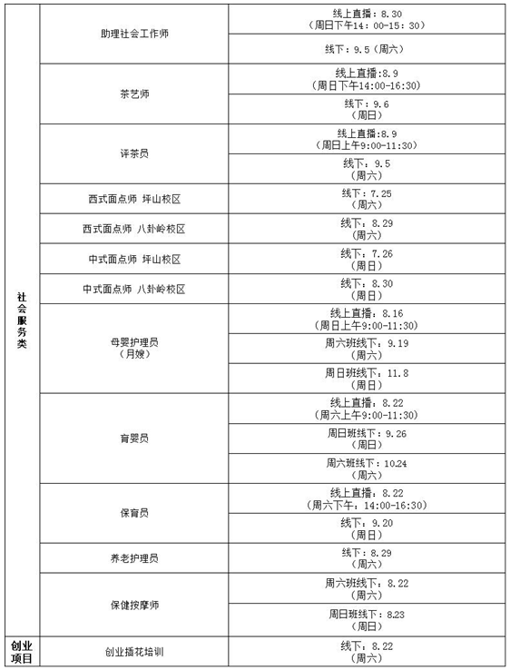 職業(yè)技能培訓(xùn)課程開課時間如下: