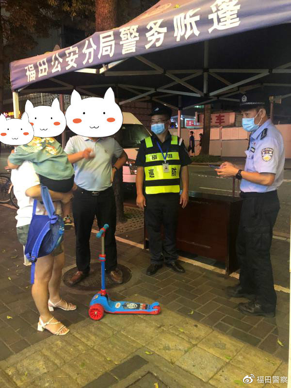 近日,深圳市公安局福田分局八卦嶺派出所巡段民警劉臣利剛處理完一起糾紛,就接到派出所前臺(tái)指令稱:在驛站附近有一名走失小孩需要幫助。接到指令后,巡段民警劉臣利立即前往現(xiàn)場(chǎng)。