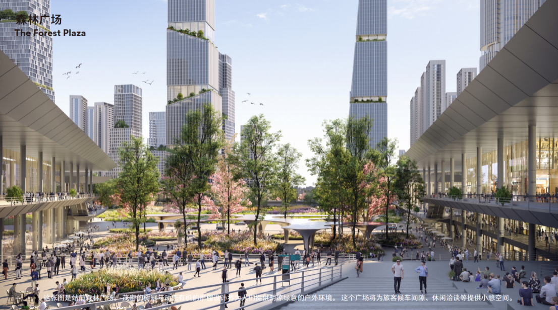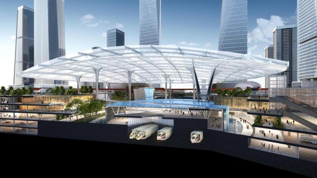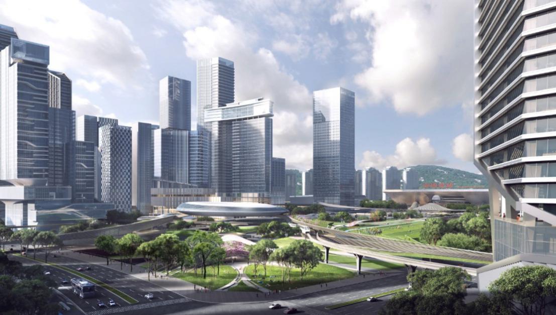 設計提出“老樞紐”和“新站城”相融合模式,在實現(xiàn)城市基礎設施升級、融匯高度復合的公共功能的同時,以屋頂覆綠的方式還城市綠色空間,并塑造全城可見的城市地標,打造既能保證城市更快捷運轉(zhuǎn),又能承載城市美好“慢生活”的灣區(qū)目的地公園,塑造科創(chuàng)之都和未來之城,讓人才欣然留下,激情創(chuàng)造,享受生活,看到未來。