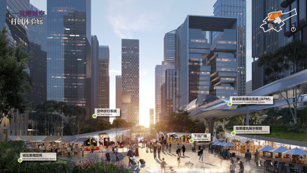 方案基于“提升一體化綜合樞紐效率”與“賦予城市生活空間吸引力”的思考,提出“灣區(qū)壹號目的地”設計理念,建構(gòu)“一樞紐通灣區(qū)、一場站聚時空、一區(qū)域融站城、一華里見未來、一藍圖繪明天”的全息場景。