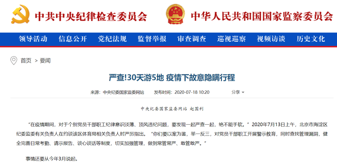 “疫情期間多次離京出國(guó),回京后不向單位、社區(qū)報(bào)告,也不居家隔離……”2020年3月,正值全國(guó)上下防控新冠肺炎疫情的關(guān)鍵時(shí)期,北京市海淀區(qū)紀(jì)委監(jiān)委收到一條舉報(bào)線索,被舉報(bào)對(duì)象是海淀區(qū)體育局綜合管理服務(wù)中心工作人員駱某。