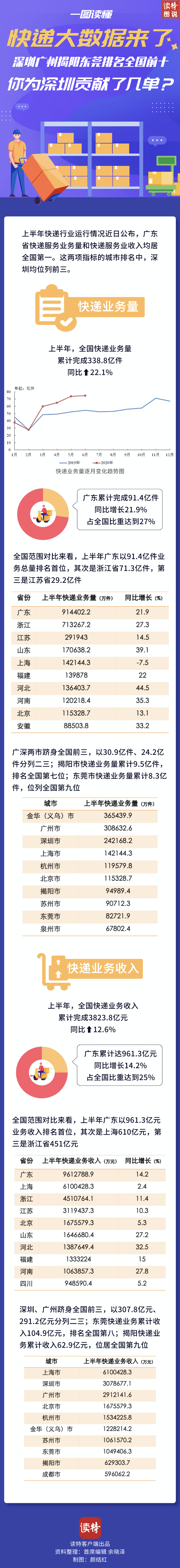一圖讀懂|快遞大數(shù)據(jù)來了 深圳廣州揭陽(yáng)東莞排名全國(guó)前十 你為深圳貢獻(xiàn)了幾單?