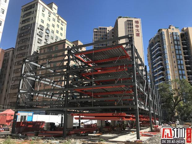 正在施工的羊臺(tái)新村機(jī)械立體車庫。