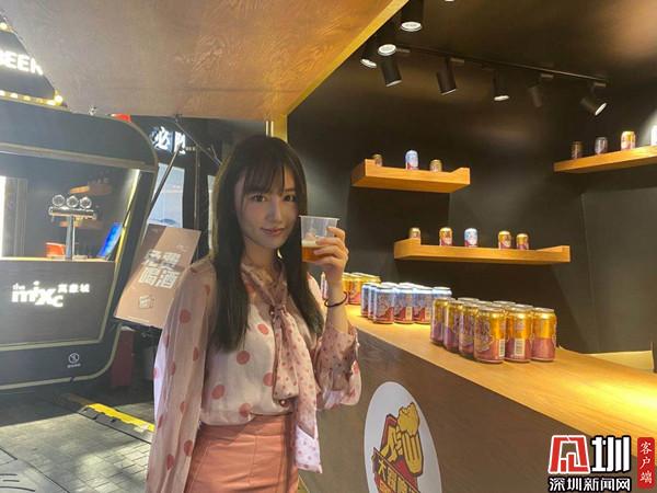 龍珠燈泡照亮夜空,震耳的音樂,橡皮桶木紋設(shè)計(jì)風(fēng)格的啤酒巴士和酒桌吧臺(tái)……直播第一站來到正在萬象城舉行的活動(dòng)“日落酒場”現(xiàn)場。9月4日至10月4日每周五至周日晚,萬象城把啤酒巴士“開”進(jìn)下沉廣場。逛街累了的市民,在汩汩噴泉旁小憩,讓耳朵沉浸在樂隊(duì)帶來的聽覺盛宴中,從清新民謠到激情搖滾,再來一杯飄著酒花香氣的精釀啤酒,仿佛置身在樸實(shí)復(fù)古的高街酒場?!奥牭揭魳仿曈悬c(diǎn)大,好奇有什么活動(dòng),”住在附近的市民屈先生,循著音樂聲來到現(xiàn)場,還免費(fèi)領(lǐng)取了一杯啤酒品嘗,覺得很開心現(xiàn)場氣氛很熱鬧。