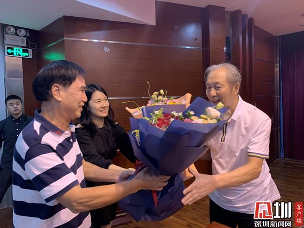演講結(jié)束后,有不少居民現(xiàn)場分享自己的奮斗故事與對深圳的熱愛。在舞臺的另一邊有兩位聽眾上臺給蔣開儒老師送花。“《春天的故事》的故事一直激勵著我們,我是1984年來的深圳,看著深圳的起步和發(fā)展。今天親臨現(xiàn)場聽到蔣老師(蔣開儒)分享的人生經(jīng)歷,感覺特別有共鳴。相信春天的故事會延續(xù)下去,深圳將再創(chuàng)輝煌。”桂木園老年人協(xié)會會長徐紅光情緒激動地說道。