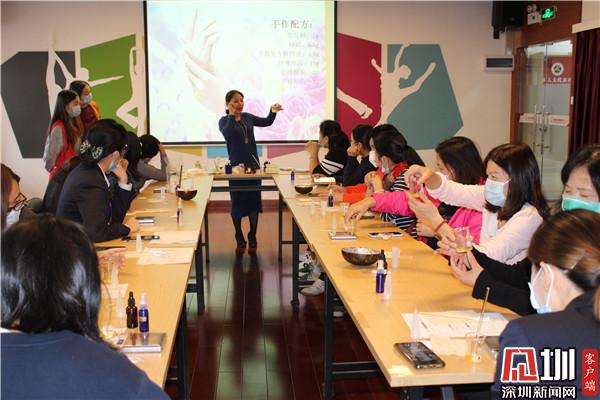 據(jù)了解,劉燦輝浸染芳香研究十幾年,有著豐富的芳療經(jīng)驗(yàn)。在課堂上,劉燦輝耐心地引導(dǎo)社區(qū)婦女在芳香中忘掉壓力和煩惱,體驗(yàn)愉快,開拓出精神力量。20位社區(qū)婦女還在老師的帶領(lǐng)下,動(dòng)手制作潤(rùn)手霜。大家相互幫助,彼此配合,經(jīng)過(guò)調(diào)試、攪拌、加熱、瓶裝等過(guò)程,每位學(xué)員都擁有了一支專屬于自己的潤(rùn)手霜。