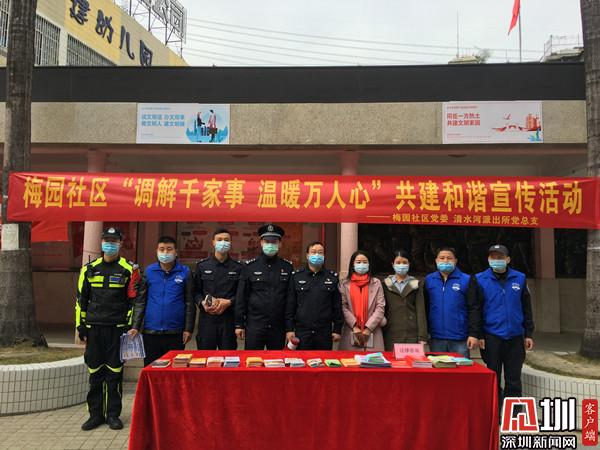 見圳客戶端·深圳新聞網(wǎng)12月15日訊(記者 彭桂紅 通訊員 紀(jì)楚苗 陳秋珊)12月15日下午,深圳市羅湖區(qū)清水河街道梅園社區(qū)黨委聯(lián)合共建單位清水河派出所黨總支、社區(qū)駐點(diǎn)律師郭佳,開展以“調(diào)解千家事 溫暖萬人心”為主題的結(jié)對(duì)共建促和諧宣傳活動(dòng),現(xiàn)場(chǎng)約200余名社區(qū)居民參加了本次活動(dòng)。