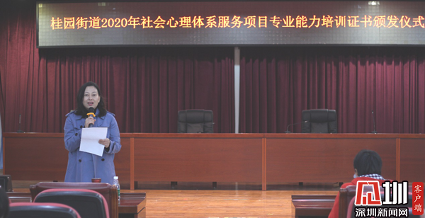 頒證儀式上,林宣妤對(duì)街道持證的心理服務(wù)人員表示祝賀,并提出殷切期望,希望持證人員所在社區(qū)要加強(qiáng)資源整合“盤活存量”,把購(gòu)買服務(wù)與開拓專業(yè)志愿服務(wù)相結(jié)合,把挖掘暨有平臺(tái)、人才和培育本土化的心理服務(wù)隊(duì)伍相結(jié)合,把轄區(qū)內(nèi)現(xiàn)有的心理咨詢室、心理咨詢師、心理服務(wù)熱線、心理服務(wù)陣地等資源加以整合,構(gòu)建跨部門、跨領(lǐng)域的心理協(xié)作體系。同時(shí)希望持證人員在工作中能夠完成去粗取精,揚(yáng)長(zhǎng)抑短,去劣存優(yōu)的動(dòng)態(tài)過(guò)程,將社會(huì)心理服務(wù)體系建設(shè)工作抓早抓好,落實(shí)到位。張小梨認(rèn)為桂園街道黨工委辦事處拿出人力物力財(cái)力對(duì)參與社會(huì)心理服務(wù)的基層干部進(jìn)行心理學(xué)專業(yè)知識(shí)系統(tǒng)培訓(xùn),可以說(shuō)是走在了前列,探索出社會(huì)心理助力社會(huì)治理現(xiàn)代化建設(shè)的“桂園模式”,為深圳社會(huì)主義先行示范區(qū)建設(shè)在社會(huì)治理與社會(huì)心理服務(wù)方面提供了鮮活案例,值得點(diǎn)贊和推廣,也為相關(guān)學(xué)者在研究上提供了范例。