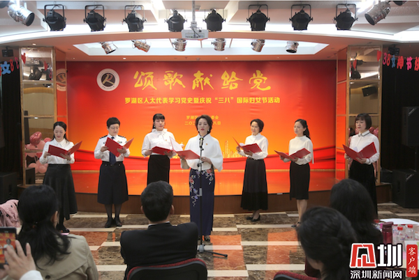 見圳客戶端·深圳新聞網(wǎng)3月8日訊(實習生 覃鈺清 記者 彭桂紅 通訊員 尹維穎 彭丹 劉寧寧)陽春三月,書寫巾幗正能量。3月8日上午,由羅湖區(qū)人大常委會主辦的“頌歌獻給黨”——人大代表學習黨史暨慶?!叭恕眹H婦女節(jié)活動,在羅湖人大代表之家溫馨舉行。羅湖區(qū)部分省、市、區(qū)人大代表及機關女干部歡聚一堂,共同慶祝第111個“三八”國際勞動婦女節(jié)。