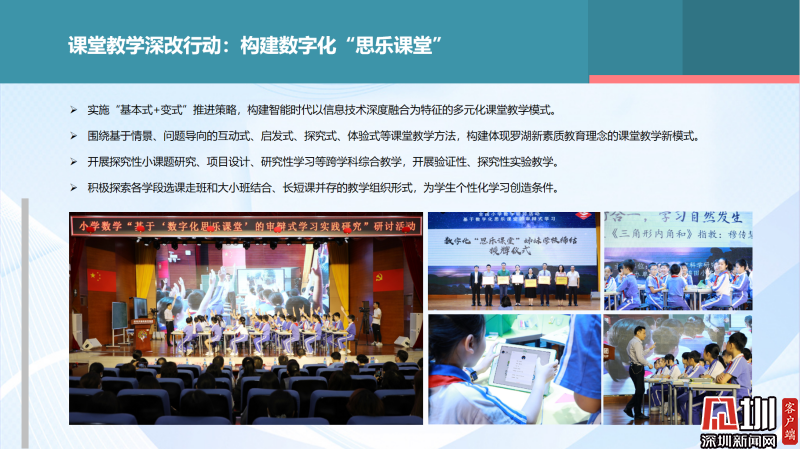 羅湖區(qū)推出的數(shù)字化“思樂課堂”相關(guān)課題,2020年被《中國教師報(bào)》認(rèn)定為中國教育課堂改革十大樣本。“思樂課堂”充分發(fā)揮數(shù)字技術(shù),提升課堂的邏輯性、趣味性、交互性、有效性,從而有效激發(fā)學(xué)生的學(xué)習(xí)潛能,使得深度學(xué)習(xí)在課堂中真實(shí)發(fā)生。目前,這種模式影響力也在不斷擴(kuò)大,走向全國。4月8日,深圳市錦田小學(xué)、布心小學(xué)與來自陜西、江西的學(xué)校締結(jié)了數(shù)字化“思樂課堂”姊妹學(xué)校。近期,第二批數(shù)字化“思樂課堂”的學(xué)校和教師加入這個(gè)課改項(xiàng)目。