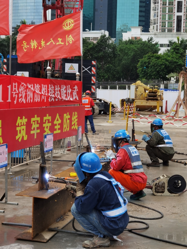 隨后,記者來到中鐵二局位于黃貝街道的地鐵11號線工地,只見工人絡(luò)繹不絕,現(xiàn)場機器轟鳴,黨員工人做模范先鋒表率,在烈日下領(lǐng)隊施工。記者了解到,工地上為工人準(zhǔn)備了休息室、飲用水以及應(yīng)急藥品,為工人夏季戶外工作保駕護(hù)航。