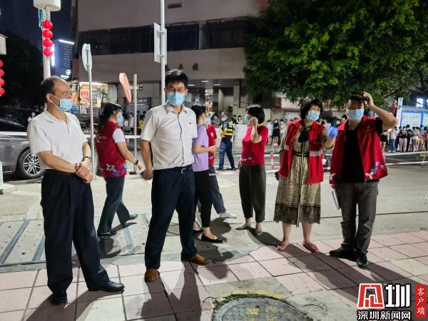 見圳客戶端·深圳新聞網(wǎng)2021年5月27日訊(記者 劉晨 通訊員 魏官明 陳惠冰)5月21日以來,深圳鹽田區(qū)、龍崗區(qū)相繼排查發(fā)現(xiàn)新冠肺炎無癥狀感染者,為堅決遏制疫情擴(kuò)散蔓延,全力守護(hù)人民群眾的生命健康安全。羅湖區(qū)東湖街道按照市委市政府、區(qū)委區(qū)政府的統(tǒng)一部署,結(jié)合疫情防控形勢新變化,快速反應(yīng)、周密部署,5月26日下午,火速整合各部門、各社區(qū)近400名工作人員組成6支防疫突擊隊伍,街道黨工委書記程時菊,黨工委副書記劉慧堅、謝統(tǒng)敏、沈文俊,黨工委委員方海峰,二級調(diào)研員張翠紅分別擔(dān)任6支隊伍的督導(dǎo)長,連夜帶領(lǐng)突擊隊員們奔赴各相關(guān)社區(qū)開展核酸檢測工作。