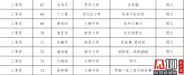 6月1日,羅湖區(qū)“家庭文明公益廣告”及“我家年度故事”征集活動獲獎名單公布,其中,18個“家庭文明公益廣告”和74個“年度故事”圖文作品獲獎。