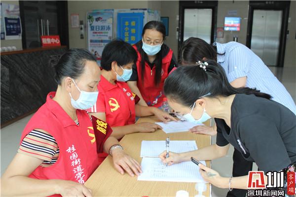 在社區(qū)“宣傳疫苗接種先鋒崗”前,忙碌著黨員的身影。社區(qū)居民林志文,是一名有著21年黨齡的老黨員。今年63歲的她身穿紅馬甲,臂戴“疫情監(jiān)督員”的紅袖章,精神抖擻地站在老圍花園E座出入口,笑容可掬地用本地話問(wèn):“靚仔,打疫苗了嗎?這里可以預(yù)約喲?!薄办n仔”聽(tīng)到如此親切的鄉(xiāng)音,停下匆匆的腳步,“沒(méi)打呢,現(xiàn)在預(yù)約吧。”與林姐是最佳拍檔的老黨員尹小妹,她們都是本地人,平時(shí)除了唱歌跳舞,她們還積極參加社區(qū)活動(dòng),疫情當(dāng)前,她們冒著被感染的風(fēng)險(xiǎn),勇敢站出來(lái),用自己的實(shí)際行動(dòng),詮釋著黨員的模范先鋒帶頭作用。