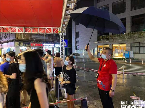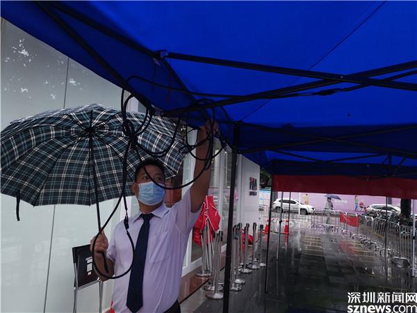 讀特客戶端·深圳新聞網(wǎng)2021年6月21日訊(記者 李慧)6月21日晚及6月22日一早,深圳雷雨交加,深圳市氣象臺2021年06月22日07時10分在多個區(qū)域發(fā)布暴雨紅色預(yù)警,羅湖也包括其中。有那么一群人,嚴(yán)陣以待、逆雨迎風(fēng),堅守在抗疫一線。記者到各核酸檢測點看到,醫(yī)護人員和社區(qū)義工們?nèi)匀幻爸L(fēng)雨,堅守在核酸采集的崗位上。