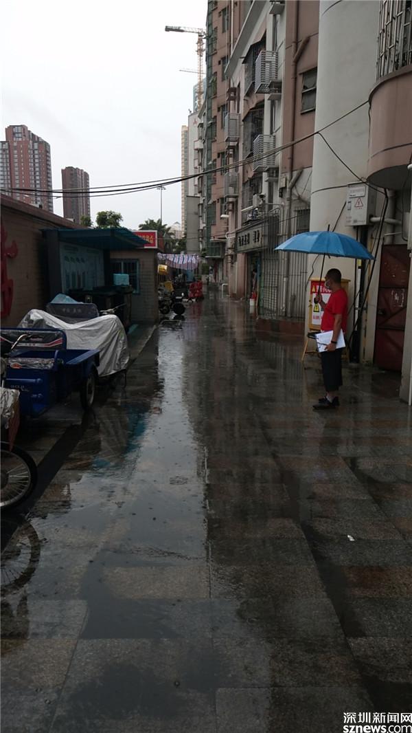 一把傘,一本臺賬,暴雨中“紅馬甲”仍然在各個小區(qū)出入口值守。