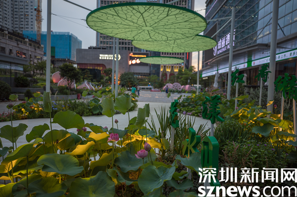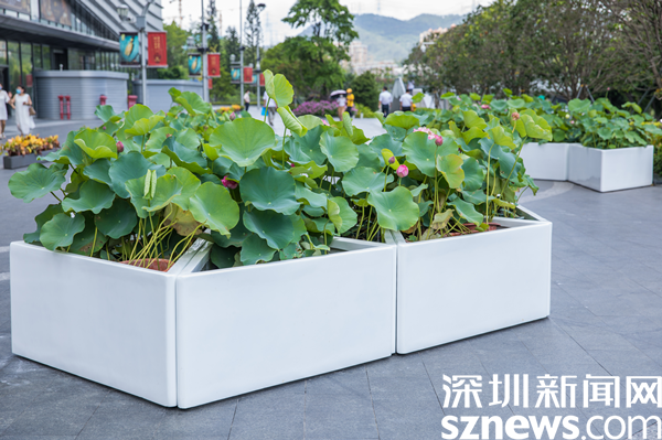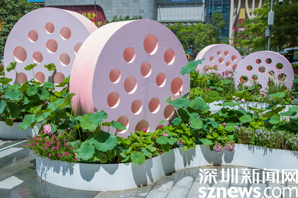據(jù)介紹,街區(qū)以“花樣水貝、紅荷傳情”為主題,提取荷花、蓮葉等造型元素,應(yīng)用多品種荷花打造藝術(shù)花境,充分展現(xiàn)荷花的藝術(shù)之美、文化之美。圍繞水貝壹號、水貝金座、水貝銀座、水貝國際等商圈建筑設(shè)置有紅荷傳情、荷葉青青、荷你藕遇、鉆石蓮心、荷荷美美、映日荷花等景點。