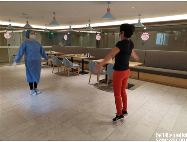 帶領(lǐng)隔離人員做放松操。