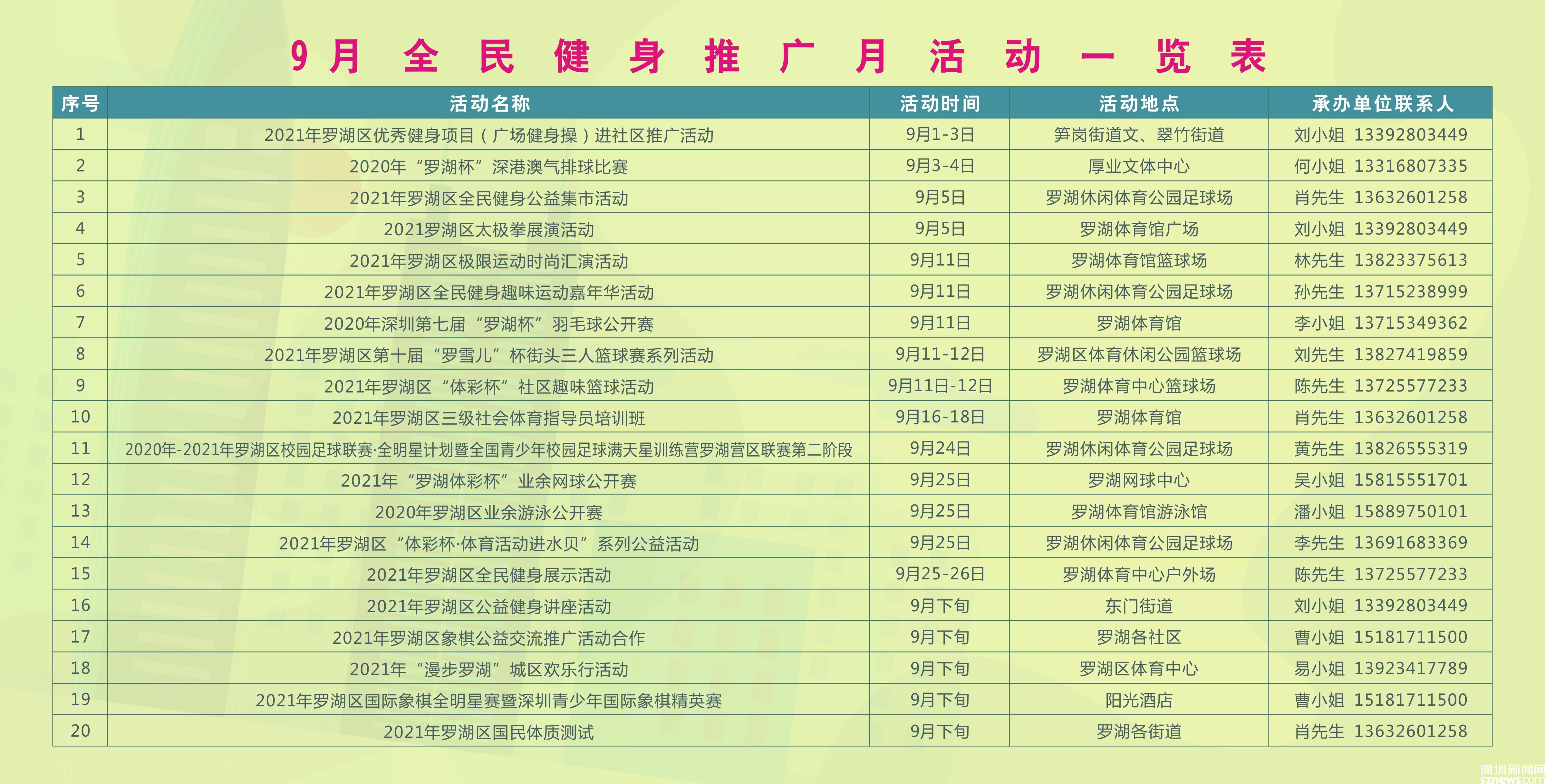 據(jù)了解,羅湖區(qū)將在9月全民健身推廣月組織承辦極限運(yùn)動(dòng)時(shí)尚匯演、全民健身趣味運(yùn)動(dòng)嘉年華、街頭三人籃球賽、羽毛球公開(kāi)賽等共二十項(xiàng)全民健身活動(dòng),市民可以在羅湖區(qū)文體場(chǎng)館“一鍵預(yù)約”平臺(tái)及時(shí)了解相關(guān)活動(dòng)資訊,還可通過(guò)“報(bào)名”版塊參與其中。同時(shí)為了鼓勵(lì)更多的市民群眾積極參與全民健身,羅湖區(qū)計(jì)劃在全民健身推廣月于 “一鍵預(yù)約”平臺(tái)推出“400萬(wàn)元體育消費(fèi)券”這一重磅福利,從2021年9月至12月向市民派發(fā)分15元、30元、100元三種面值的消費(fèi)券,每周發(fā)放,有效期兩周,市民通過(guò)羅湖區(qū)文體場(chǎng)館“一鍵預(yù)約”平臺(tái)可以搶券,體育消費(fèi)券適用于羅湖體育館、羅湖體育中心戶外運(yùn)動(dòng)場(chǎng)、羅湖網(wǎng)球中心、羅湖室內(nèi)網(wǎng)球館、羅湖體育休閑公園的運(yùn)動(dòng)場(chǎng)租、門(mén)票、培訓(xùn)及體育用品等,為市民送來(lái)實(shí)實(shí)在在的惠民體育福利,讓市民可以任意選擇自己喜愛(ài)的運(yùn)動(dòng)項(xiàng)目進(jìn)行消費(fèi)。