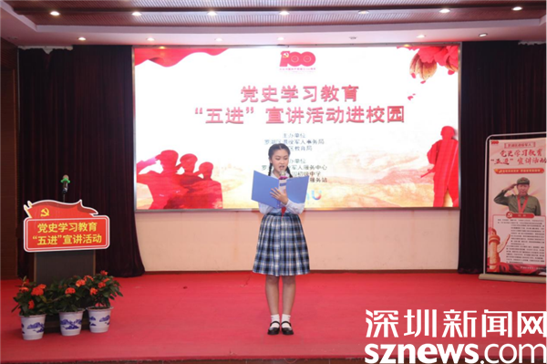 紅星宣講隊(duì)兩位老兵氣勢恢宏的敘事、真實(shí)生動(dòng)的情節(jié)、鮮活感人的故事讓同學(xué)們的心靈深受震撼。同學(xué)們也被革命先烈頑強(qiáng)戰(zhàn)斗、英勇無畏的精神深深打動(dòng)。 活動(dòng)現(xiàn)場,羅湖區(qū)翠園初級(jí)中學(xué)合唱團(tuán)獻(xiàn)上一首軍旅歌曲《我愛祖國的藍(lán)天》,引來了陣陣掌聲。學(xué)子們唱出了新時(shí)代少年的精氣神,也表達(dá)了“擁軍愛國跟黨走”的堅(jiān)定信念。