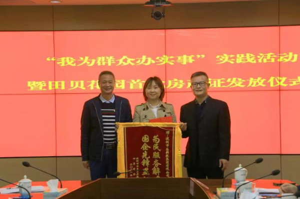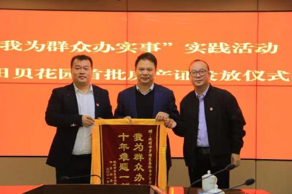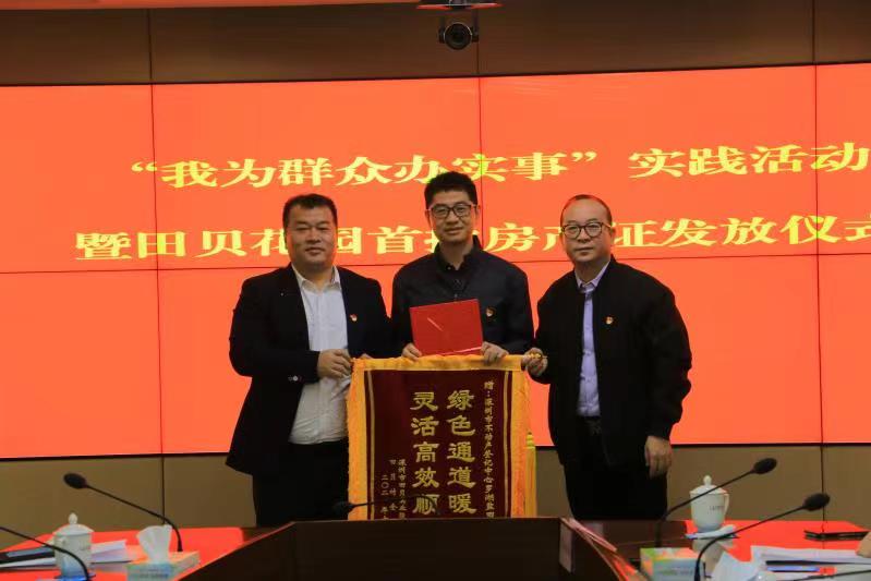 儀式當天,5名村民代表從羅湖區(qū)領導的手中接過了房產(chǎn)證,田貝股份合作公司向有關單位贈送錦旗表示感謝。