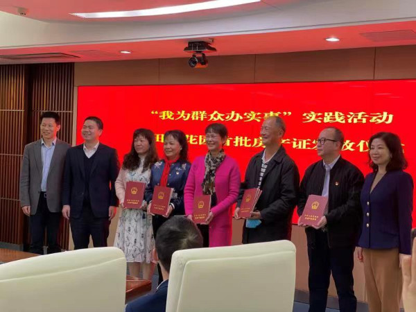 經(jīng)過5個多月的奮戰(zhàn),三大難題全部得到破解,居民辦理房產(chǎn)證的“路”被打通。12月10日完成田貝花園土地使用權證注銷抵押登記、房屋初始登記,成功辦理首批12本房產(chǎn)證并完成抵押登記。