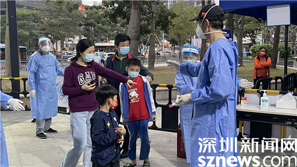 “把嘴張開,放輕松?!贬t(yī)護(hù)人員輕車熟路地進(jìn)行咽拭子采樣,迅速封存標(biāo)本,短短幾秒的過程不僅體現(xiàn)了“深圳速度”,更凸顯了醫(yī)護(hù)人員的耐心與專業(yè)性。不論是老年人還是小朋友,醫(yī)護(hù)人員都通過不同的溝通方式高效完成采樣工作,確保核酸檢測工作有序進(jìn)行。
