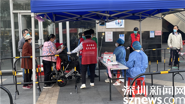 在翠竹街道金翠園核酸檢測點(diǎn),記者在現(xiàn)場看到核酸檢測隊(duì)伍共分成兩條隊(duì)伍,居民正按照地面劃好的“一米線”排隊(duì),身穿紅馬甲的社區(qū)工作人員與醫(yī)護(hù)人員正有條不紊地進(jìn)行核酸采樣工作,詢問、登記、采樣......在羅湖的街頭,除了秩序井然的核酸檢測,溫暖的故事也在悄然發(fā)生著。