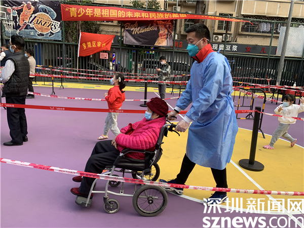 由于樓宇建設(shè)年代久遠(yuǎn),基礎(chǔ)設(shè)施較為落后,核酸檢測(cè)點(diǎn)設(shè)在新村社區(qū)僅有的一個(gè)籃球場(chǎng)空地上。羅湖區(qū)審計(jì)局下沉干部與社區(qū)黨委精心謀劃,按照“隔離檢測(cè)、分流進(jìn)場(chǎng)、專崗專人”的原則,在長(zhǎng)28米、寬15米的小方陣?yán)?,搭起?條核酸檢測(cè)通道,按照引導(dǎo)員、計(jì)數(shù)員、掃碼員、講解員等不同職能,重構(gòu)了檢測(cè)流程,定人定崗“流水線”工作,迅速提升了檢測(cè)效率。