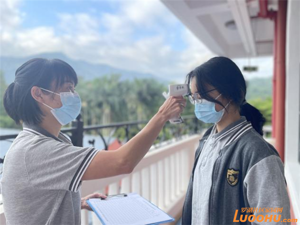 藍(lán)天白云下,背著書包的莘莘學(xué)子走上紅毯,一旁的幕布寫著偌大的八個(gè)字:羅湖實(shí)驗(yàn)、歡迎回家。深圳市羅湖實(shí)驗(yàn)學(xué)校的返校頗具儀式感,校門口一席紅毯,校園欄桿彩旗飄飄,孩子們?cè)谝黄矚庋笱蟮姆諊谢氐綄W(xué)校。