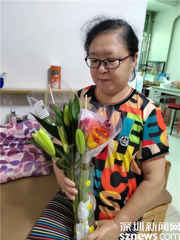 在活動過程中,11位組員都收到了一束鮮花,是社工利用空余時間,捧著花送到每位組員家中的。社工用鮮花敲開組員的家門,這就仿佛是一次家訪,收到花的組員開心地與社工合影。花開的時候,不少組員都拍下來發(fā)在群里,讓快樂與美好的氣氛在群里彌漫。組員袁春艷在微信群里說:“感謝人美心善的社工們,在工作異常忙碌的同時,不僅為我們精心準(zhǔn)備干貨滿滿、精彩絕倫的減壓課,還為我們送來鮮花的芬芳!讓我日常雜亂的家變得美麗精致、花香彌散、情趣高雅!真的有太多向您學(xué)習(xí)的地方!愛您!”