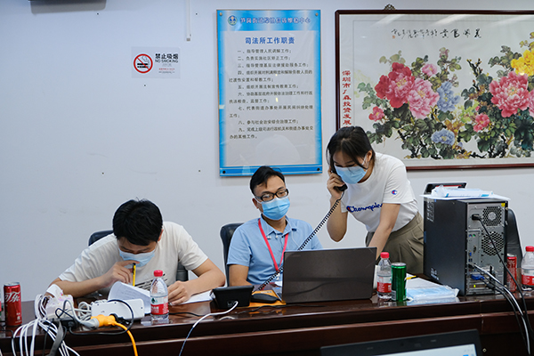 7月24日,雖然已經(jīng)是中午時分,但是在筍崗街道流調(diào)組的大會議室內(nèi),40多位來自羅湖區(qū)教育系統(tǒng)的工作人員仍爭分奪秒、馬不停蹄,以最快速度、最高精度對涉疫場所重點人員信息進行逐樓逐戶排查。流調(diào)組安排兩班人員白天黑夜連班倒,搶抓“黃金24小時”窗口期。