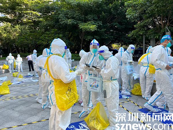 讀特客戶端·深圳新聞網(wǎng)2022年9月4日訊(記者 邱婕)“你好,請(qǐng)開(kāi)門,我們來(lái)做核酸采樣了?!?月4日上午,位于羅湖區(qū)筍崗街道筍西社區(qū)的嘉寶田花園內(nèi),不斷響起核酸采樣小組工作人員的聲音。疫情當(dāng)前,筍西社區(qū)立刻進(jìn)入“戰(zhàn)時(shí)狀態(tài)”,科學(xué)劃分戰(zhàn)線、細(xì)致部署工作、嚴(yán)格精準(zhǔn)管控居家隔離醫(yī)學(xué)觀察對(duì)象。據(jù)了解,嘉寶田花園居民有2075戶共5675人,為了更加高效、安全地開(kāi)展工作,社區(qū)工作站劃分了35個(gè)小組,每組由一名醫(yī)護(hù)人員、一名安保人員和一名區(qū)下沉干部組成,三人成組完成上門核酸采樣工作。