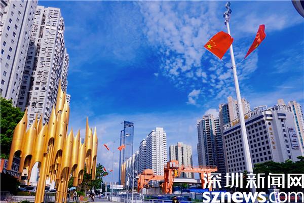 五星紅旗迎風(fēng)飄揚(yáng) 羅湖國(guó)慶氛圍濃郁