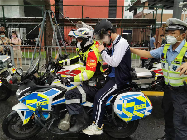 6月7日上午,深圳市第二實(shí)驗(yàn)學(xué)??紙?chǎng)外的一名高考生向交警求助護(hù)送。羅湖交警獲悉該情況后,迅速啟動(dòng)“綠色通道”護(hù)送。