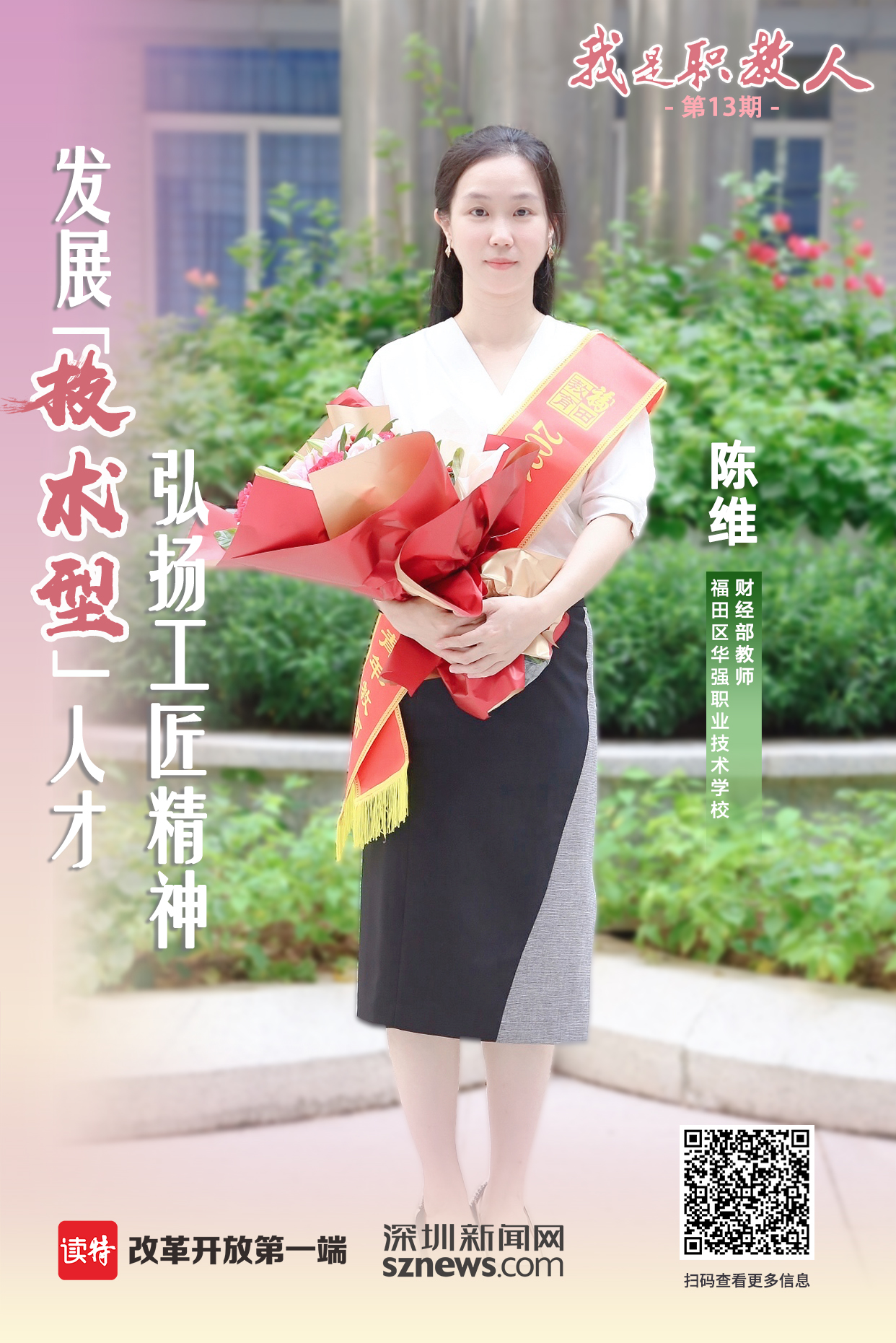 “對(duì)生活有熱愛(ài),才會(huì)變得有趣;對(duì)生活和世界保持好奇心,才能擁有創(chuàng)造力和想象力?!睆氖侣殬I(yè)教育的第十年,深圳市福田區(qū)華強(qiáng)職業(yè)技術(shù)學(xué)校財(cái)經(jīng)部老師陳維,始終期望學(xué)生成為有趣、有技術(shù)、有創(chuàng)造力,能為社會(huì)做出貢獻(xiàn)的人。