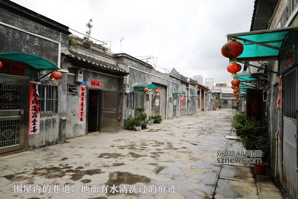 老圍屋的旁邊,高樓大廈林立。其中就有龍崗的新地標萬科廣場,兩種截然不同的建筑風格,因緣際會般“聚”在了一起。