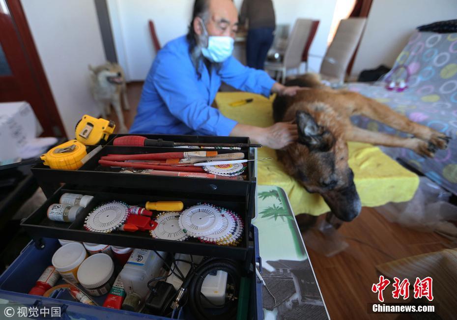 2018年春節(jié)期間,前往北京市朝陽區(qū)高碑店鄉(xiāng)大黃莊社區(qū)甲3號(hào)的人絡(luò)繹不絕,他們來這里的目的,就是為了讓自己的愛犬“重生”。這家店的主人名叫老郭,是一位動(dòng)物標(biāo)本制作師,他對(duì)來客常說的一句話就是:“你帶著躺下了的寵物來,我還你一個(gè)站起來的它”。圖為郭元虎正在制作狗標(biāo)本。文字來源:法制晚報(bào) 圖片來源:視覺中國