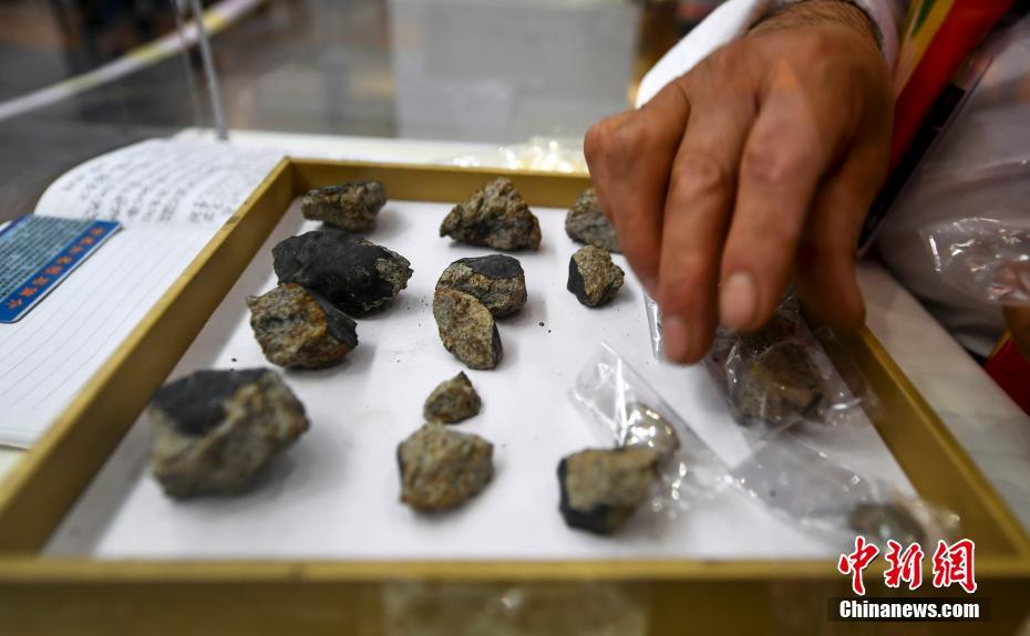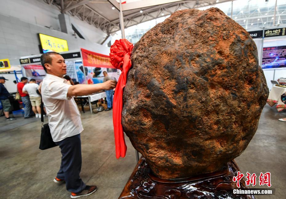 6月15日,第十一屆新疆觀賞石、和田玉精品博覽會在位于新疆烏魯木齊市紅光山的新疆國際會展中心開幕,本次博覽會參展種類涵蓋珠寶、玉石、礦石、隕石、觀賞石等,吸引眾多奇石玩家到場“以石會友”,打造獨具特色的“品石”盛宴。圖為曾引起各方關(guān)注,6月1日降落在云南西雙版納州景洪市的隕石“空降”本屆石博會展出。中新社記者劉新 攝