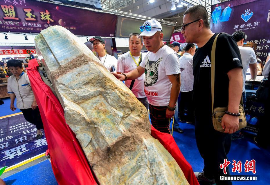 6月15日,第十一屆新疆觀賞石、和田玉精品博覽會在位于新疆烏魯木齊市紅光山的新疆國際會展中心開幕,本次博覽會參展種類涵蓋珠寶、玉石、礦石、隕石、觀賞石等,吸引眾多奇石玩家到場“以石會友”,打造獨具特色的“品石”盛宴。圖為產(chǎn)自新疆阿勒泰地區(qū)富蘊(yùn)縣庫瑪拉山重量近1噸、價值1.5億元人民幣的海藍(lán)寶原礦石。中新社記者劉新 攝