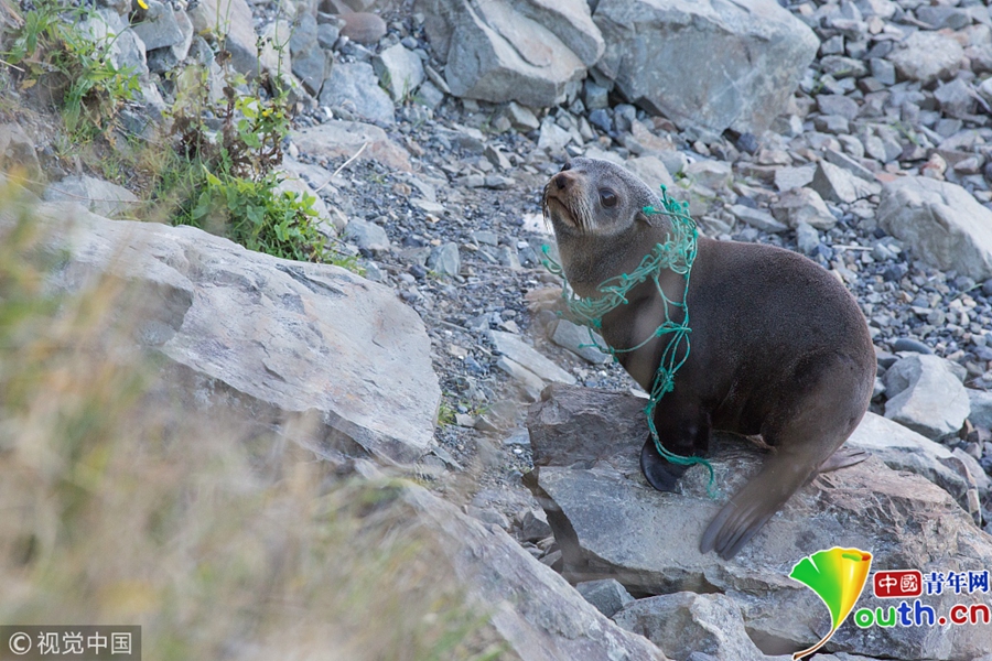 落單的海豹被漁民的繩子套住脖子。圖片作者/視覺(jué)中國(guó)