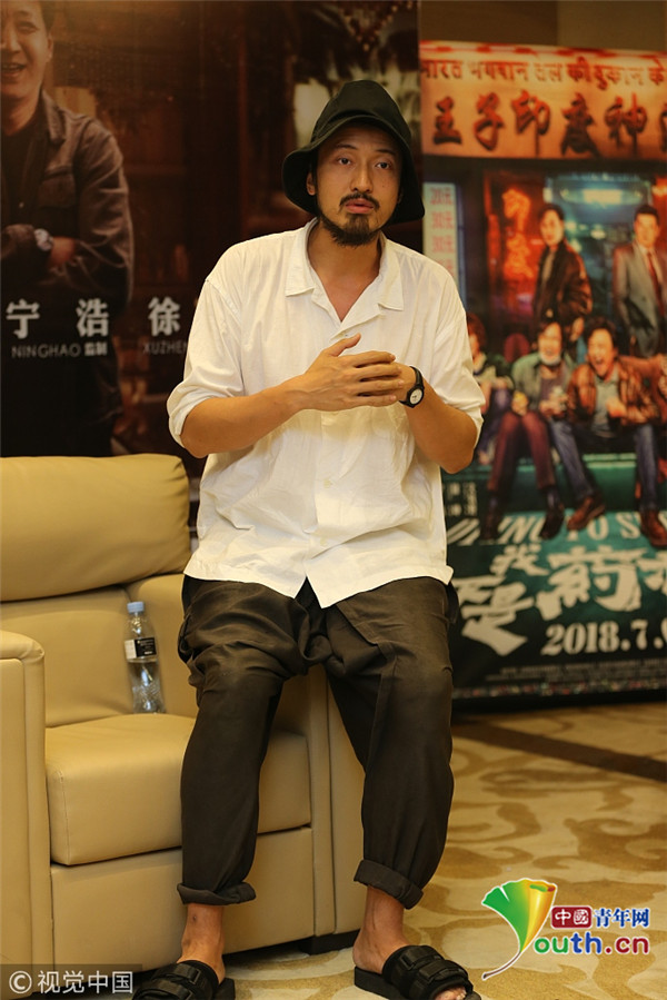 2018年7月8日,王傳君現(xiàn)身青島宣傳新片《我不是藥神》。憑借《藥神》“咸魚翻身”的他不改本色,戴漁夫帽蓄著胡須造型似日系大叔,踩著拖鞋挽著褲腳公開亮相,相當隨性。