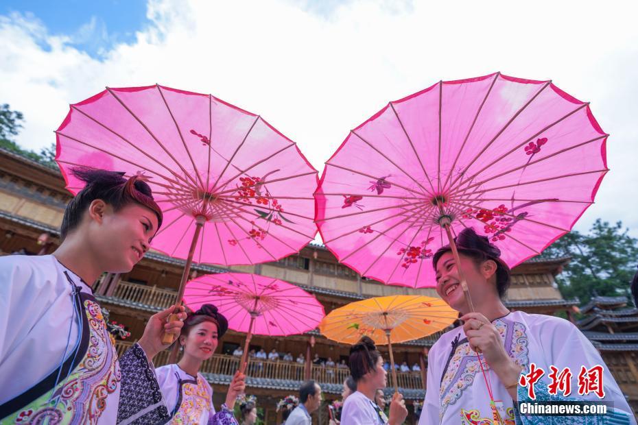 7月14日,貴州榕江,相思節(jié)上身著盛裝的侗族婦女。當(dāng)日,貴州省榕江縣樂里七十二寨舉行“六月六”相思節(jié),當(dāng)?shù)厣贁?shù)民族身著節(jié)日的盛裝,舉行盛裝巡游、吹蘆笙、踩歌堂等民俗活動(dòng)歡度節(jié)日。中新社記者賀俊怡 攝
