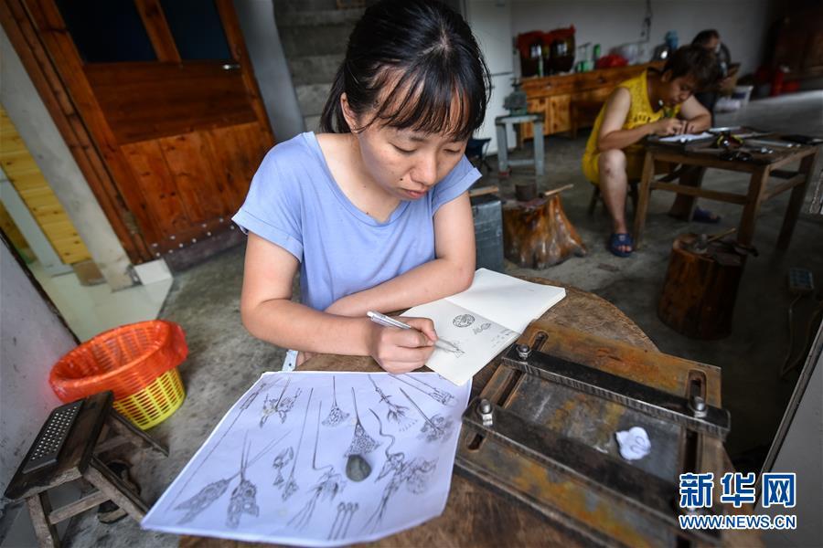 唐白梅是美國一所高校首飾設計專業(yè)的在讀研究生,專門利用暑假時間到雷山縣學習銀飾工藝。 “以前挑著擔賣貨,賣不完回不了家;現(xiàn)在有了網(wǎng)上銷售,太方便了?!痹谫F州省黔東南苗族侗族自治州雷山縣西江鎮(zhèn)控拜村,50歲的銀匠龍懂陽拿著手機查看全國各地發(fā)來的銀飾訂單,七月份的銷售額輕松超過了一萬元。雷山縣的銀匠主要集中在控拜、麻料、烏高三個村,銀飾加工已經(jīng)有600多年歷史。作為銀匠家族的第九代傳人,龍懂陽從14歲開始便挑著銀飾走村串鄉(xiāng),上門推銷。但山鄉(xiāng)偏僻路途遙遠,客源又有限,這種方式僅能勉強維持收支。為了賺錢,龍懂陽放棄了傳統(tǒng)手藝,到溫州打工賣皮鞋。隨著家鄉(xiāng)的道路修通,苗寨的游客越來越多,銀飾品打開了新銷路。2014年,龍懂陽建起了銀匠鋪,重拾本行。在當?shù)胤鲐毟刹亢涂腿说膯l(fā)下,他建起了銀飾展示廳,開了網(wǎng)店,線上訂單源源不斷。